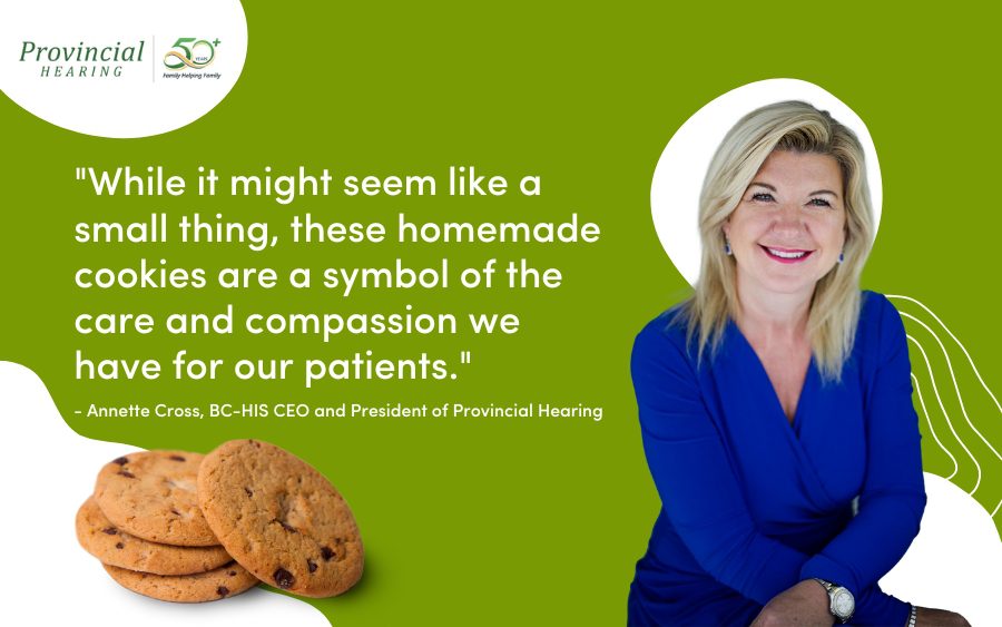 While it might seem like a small thing, these homemade cookies are a symbol of the care and compassion we have for our patients. They're a comforting reminder that at Provincial Hearing, we treat everyone like family, and we're always looking for ways to brighten our patients' day.